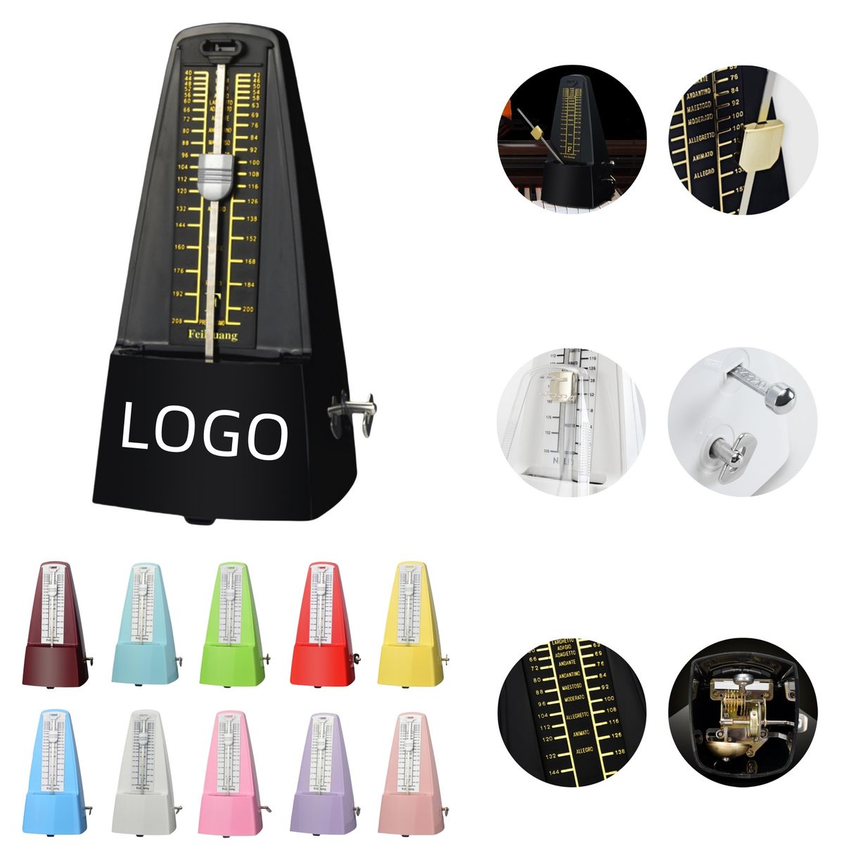 It's a mechanical metronome with an all-metal movement. Made of plastic. This mechanical metronome helps you develop rhythm, maintain tempo, play accurately and increase your musical awareness. Applicable for most music instruments.