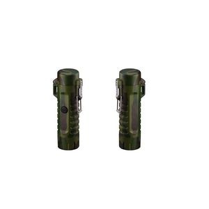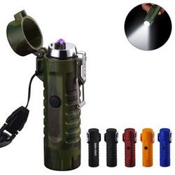 This portable LED flashlight is lightweight and exquisitely designed, powered by a rechargeable battery. Made from durable zinc alloy, it features bright LED light and a strobe mode. The waterproof case includes a dual-arc lighter, providing fire energy anywhere. The pop-up lid with a buckle and attached lanyard make it easy to carry. An essential emergency tool, it's a perfect gift for camping, auto dealers, travelers, or any other emergency situation.